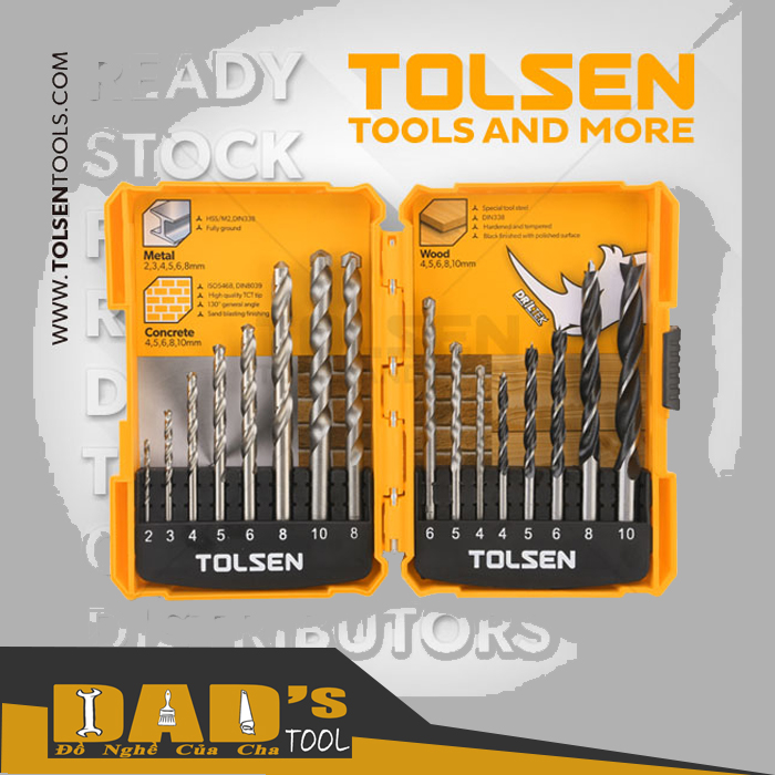 BỘ 16 MŨI KHOAN GỖ - TƯỜNG - SẮT TOLSEN 75628