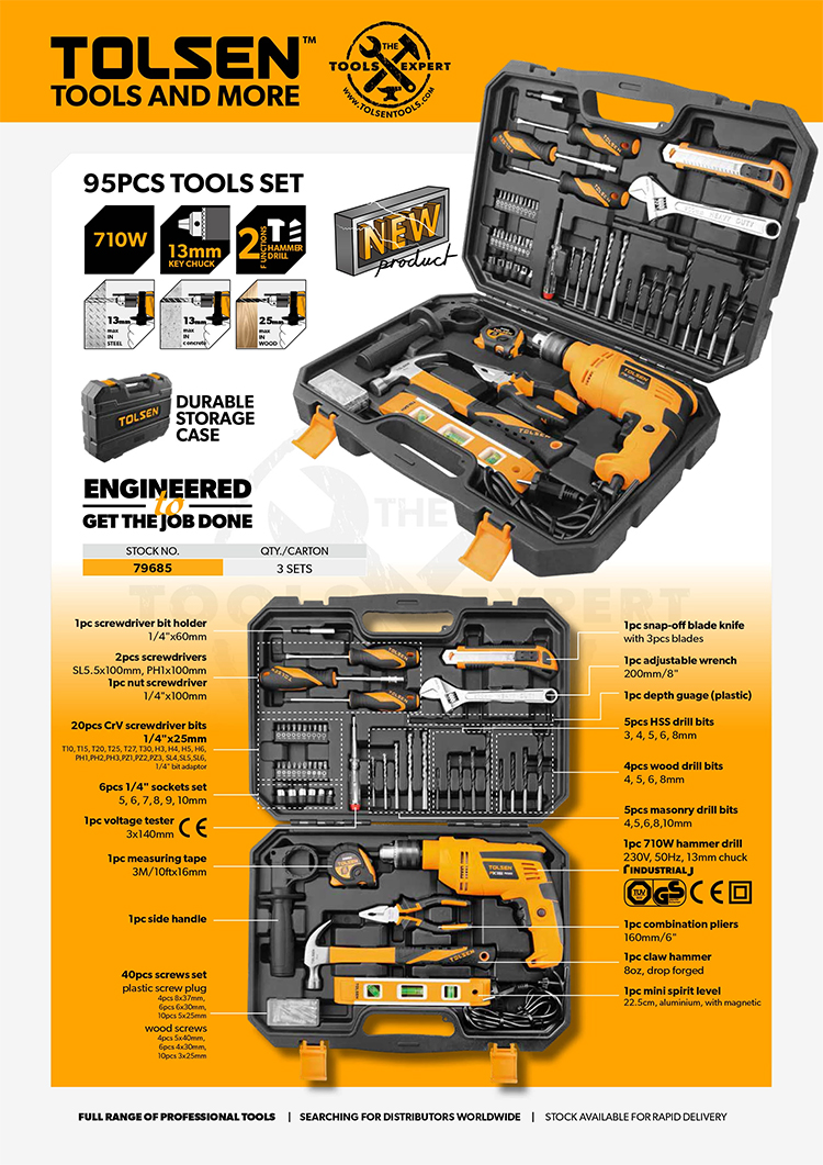 BỘ MÁY KHOAN 710W KÈM DỤNG CỤ 94 Chi tiết TOLSEN 79685