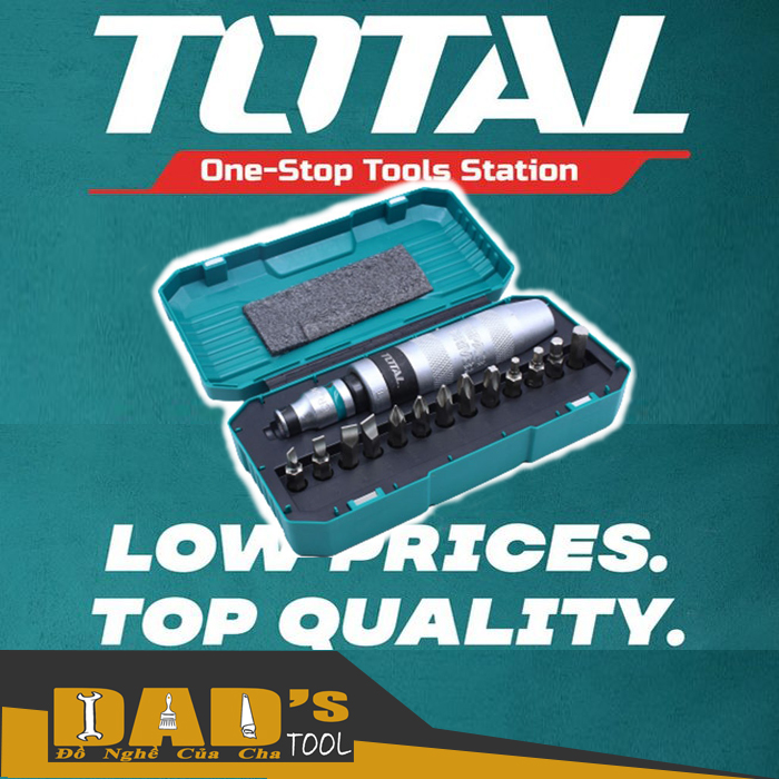 TOTAL là một thương hiệu tập trung vào các công cụ chất lượng hàng đầu với giá cả phải chăng, phù hợp với người tiêu dùng của Việt Nam.Ý tưởng của TOTAL là chất lượng hàng đầu không chỉ liên quan đến chức năng, tính khả dụng và hình dáng, mà còn về hiệu quả, hiệu suất và khả năng bảo trì. Chúng tôi không bao giờ thực hiện bất kỳ quảng cáo nào trên TV, điều đó có nghĩa là chúng tôi tiết kiệm tất cả các chi phí không cần thiết để mang lại lợi ích cho khách hàng và làm cho các sản phẩm chất lượng hàng đầu có hiệu quả về chi phí.