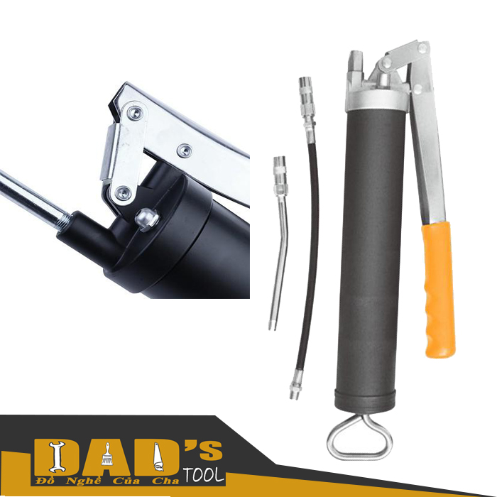 Dụng cụ dùng để bơm mỡ bò cho máy, chi tiết máy. Với đầu ống dài có thể bơm tới một số vị trí nhỏ hẹp.
