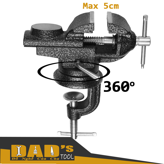 Phần kẹp cố định vào nơi làm việc tối đa 5cm.