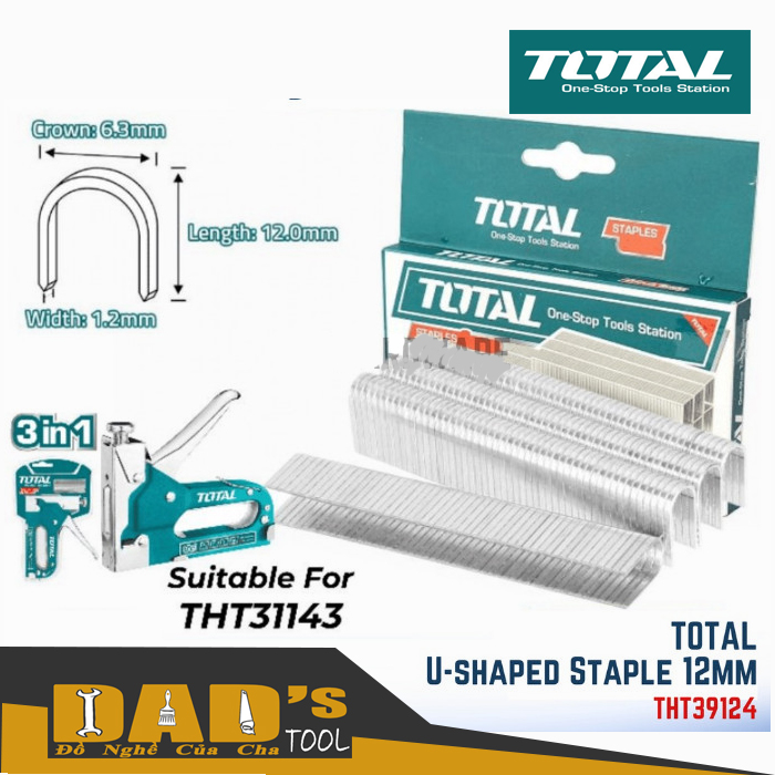 HỘP 1000 KIM BẤM U TRÒN 1.2x12mm TOTAL THT39124