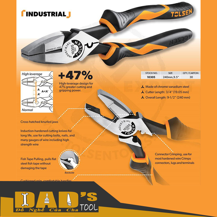 Tiết kiệm 47% sức lực so với kìm loại thường.