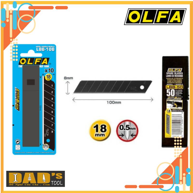 LƯỠI DAO RỌC GIẤY 18x100mm ĐEN OLFA LBB-10B/LBB-50