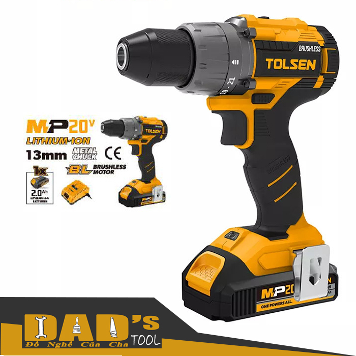 MÁY KHOAN PIN 20V 13mm (ĐỘNG CƠ KHÔNG CHỔI THAN) TOLSEN 87252