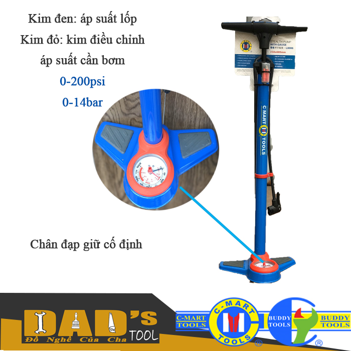 ỐNG BƠM XE ĐẠP ( Bơm tay) CÓ ĐỒNG HỒ 685mm C-MART L0006