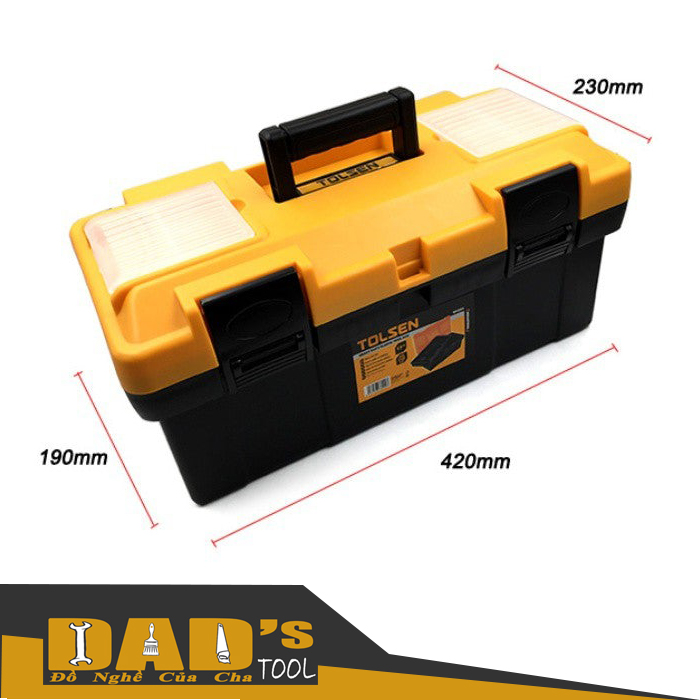 Kích thước D420 x R230 x C190 mm chứa được hầu hết dụng cụ cơ bản trong gia đình,: búa , kềm, tua vít.....